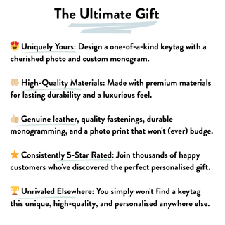 Our best selling keytag design. Display your precious photo, tucked safely inside a buttery-soft leather outer case.